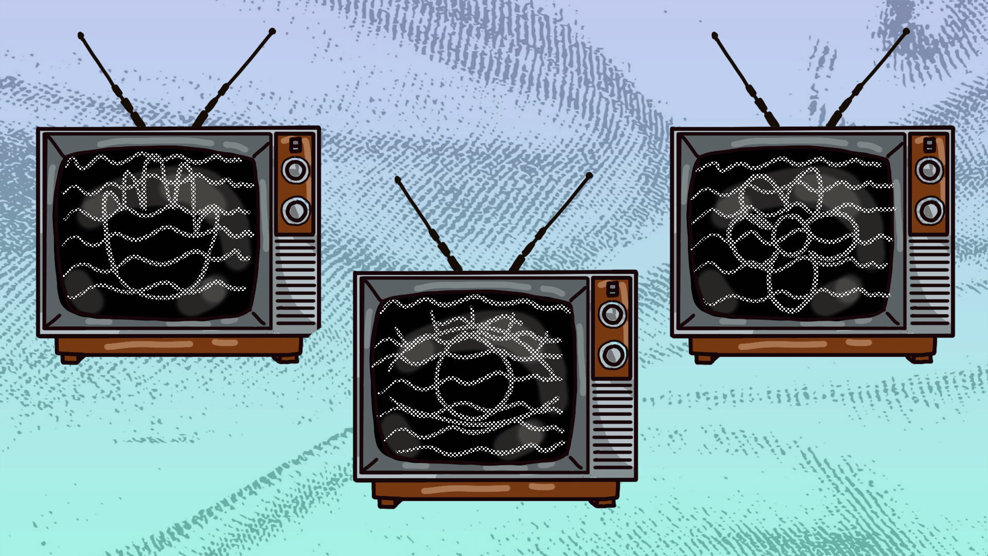 A collection of illustrated gifs, posters, and an icon set.
