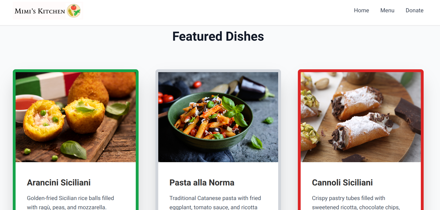 Inspired by my Sicilian heritage and my grandmother's cooking, Mimi's Kitchen is a website for a restaurant based in New York City. I created the logo based on the Sicilian flag and the most important ingredients in Italian cooking. The website is easy to navigate and focuses on my family's story and the amount of heart that goes into the dishes offered.
